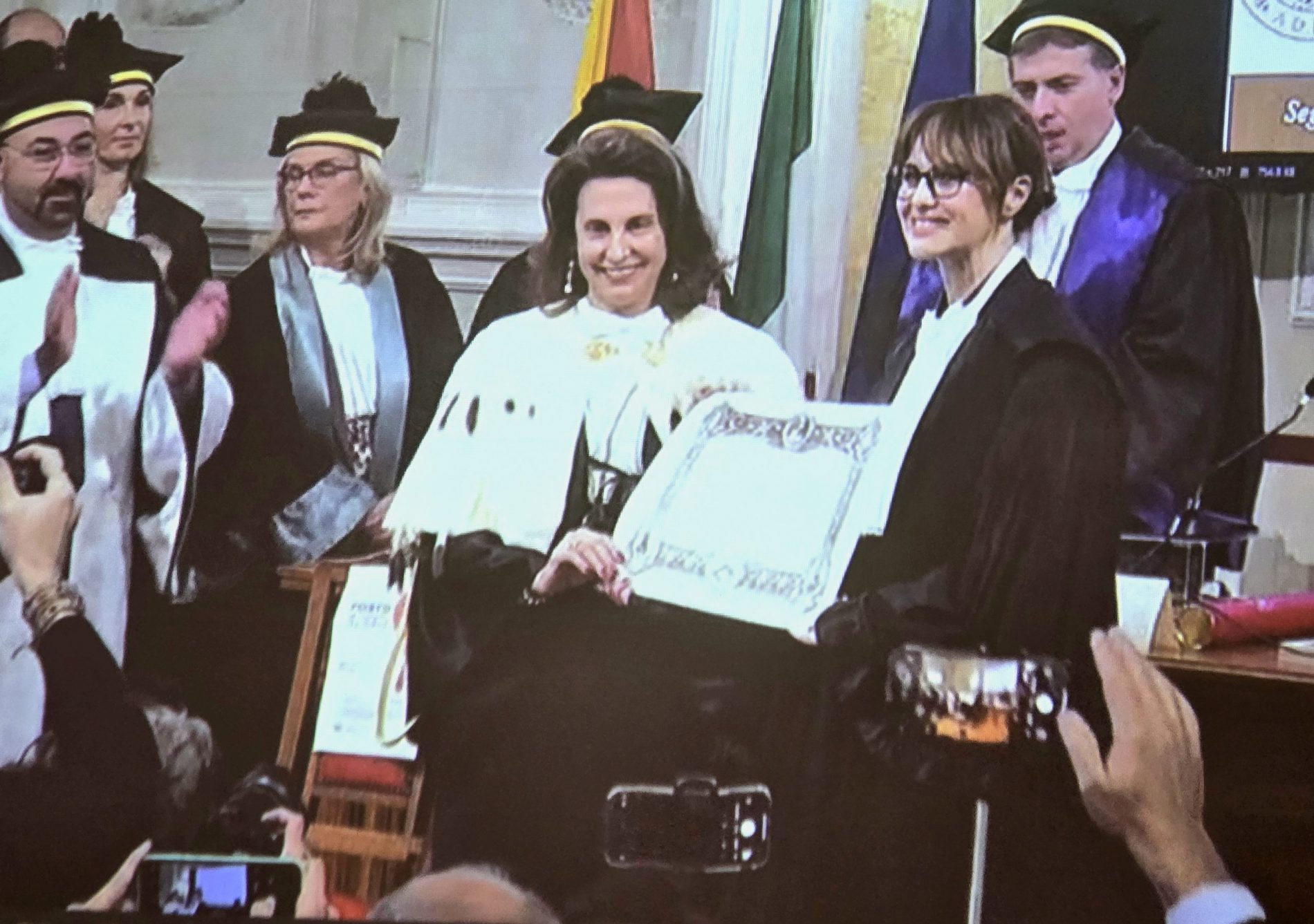 Il prof. Lo Giudice ha poi spiegato i motivi del conferimento della Laurea Magistrale honoris causa in Giurisprudenza a Paola Cortellesi. «La laureanda ha un percorso caratterizzato da alta qualità e sensibilità a temi sociali e culturali. Nel film “C’è ancora domani” si vede l’esperienza giuridica, le vicende di una donna che vive in uno stato di subordinazione, senza diritti. Tutto questo si intreccia nel film con la data del 2 giugno in cui l’Italia divenne Repubblica. L’opera è un esempio magistrale di incontro tra microstoria e macrostoria» – ha sottolineato.
