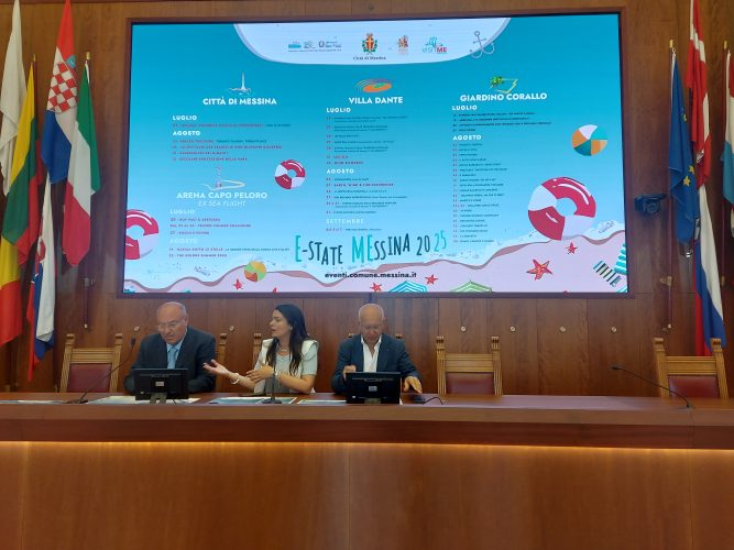 Presentato questa mattina a Palazzo Zanca il calendario degli eventi “Estate 2025” di Messina. Il programma è frutto del lavoro sinergico dell’intera squadra di Assessori con il supporto delle Partecipate comunali. Il calendario degli eventi comprende appuntamenti musicali, artistici, culturali e ricreativi che animeranno tutta la città, dal centro alle zone nord e sud, per tutto il periodo estivo, e il calendario dell’edizione Vara 2025.