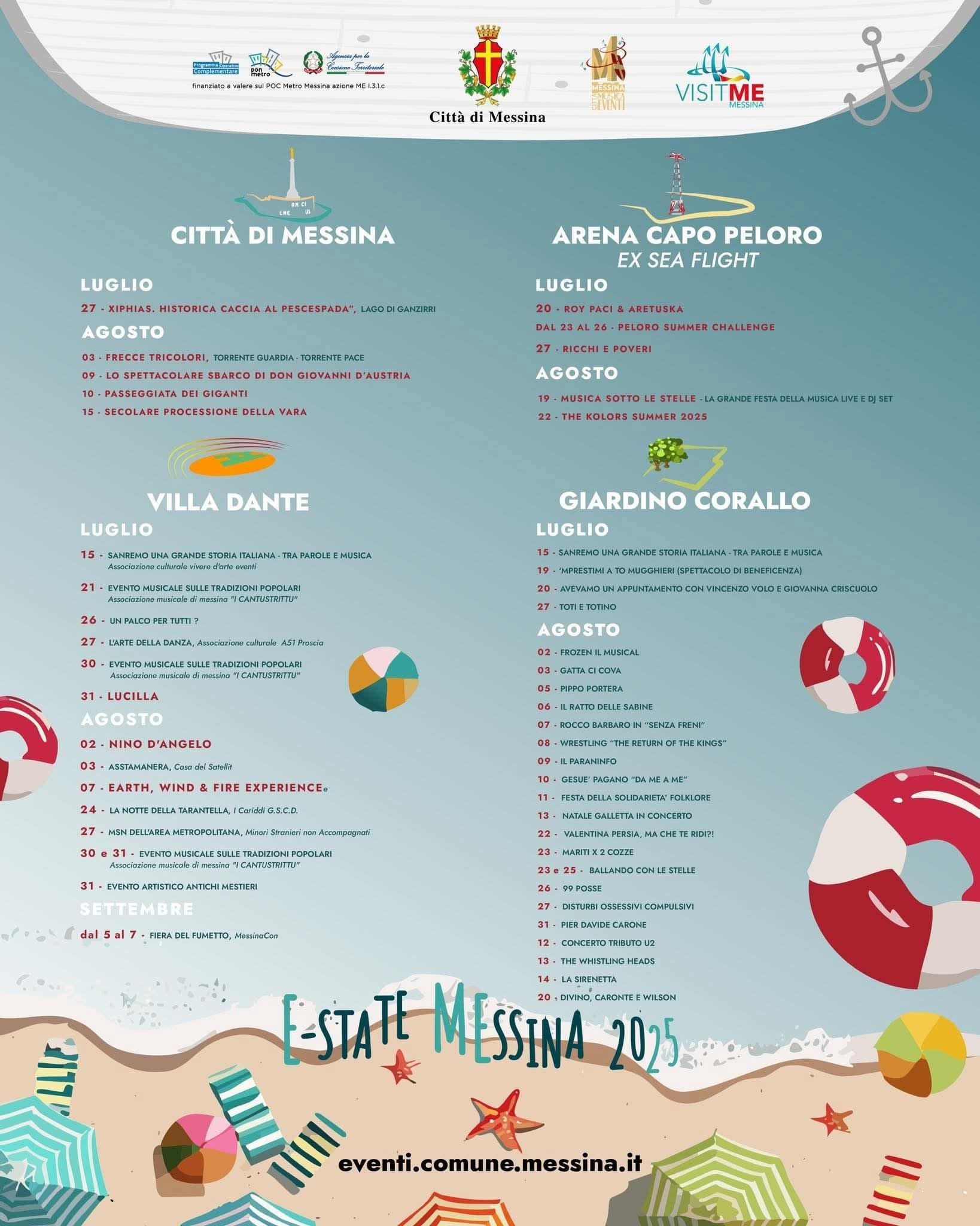 Tutti gli eventi dell’estate 2025 a Messina si potranno trovare sul sito eventi.comune.messina.it