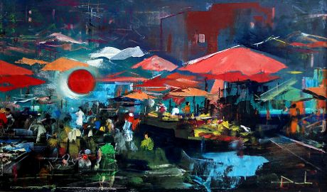 I mercati siciliani più famosi da Ballarò alla Vucciria, sono difatti, luoghi dove la socializzazione, le grida, gli sguardi, la gestualità, assumono significati particolari. Nella scena gastronomica urbana si passa dalla tradizione al gourmet, elaborando la tendenza street food. Coniugano il linguaggio dei sapori con quelli della cultura e della comunicazione inventano ‘brand’ urbani. Sono anche però una rappresentazione rituale che permette di creare un’anima sociale come spiega lo stesso Dimitri Salonia: “Con i pastelli ho scritto del colore sofferto dell’ultimo mercato, ho registrato il calore variopinto del suono delle sue voci, ho fermato il brillio variopinto e gioioso della merce di prima scelta e quello smorto della privazione, ho registrato il colore acceso delle grida di “banniata” e quello arrabbiato della concorrenza, ho visto con l’anima e con i sensi il rosso dei teloni e il grigio della pioggia, trafitti da un raggio di sole, ho sentito le acri tinte del marcio degli scarti e dell’olezzo dei rifiuti. I mercati hanno smascherato la tragica allegria, analizzando le reti misteriose e molteplici dell’anima malinconica dei siciliani. Ho fermato il perpetuarsi e l’espandersi di quel grido di mercati lacerati dal tempo, ancora vivo sotto i rossi ombrelloni che immersi e sommersi nella solitudine di un apparente letargo, si accendono di qualche rara figura di un uomo e di donna, fino a creare l’animazione di una folla ancora muta, dove il singolo si perde in trasparenze luminose”.