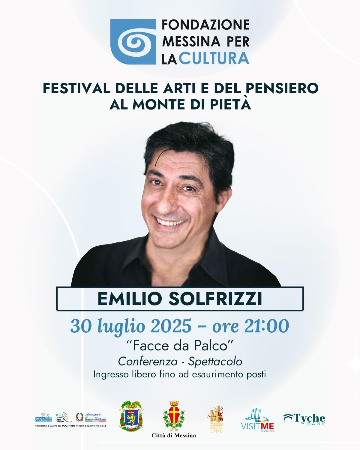Questa sera alle 21 al Monte di Pietà, nell’ambito della rassegna Festival delle Arti e del Pensiero, ci sarà Emilio Solfrizzi con Facce da Palco a Messina. La rassegna è promossa dalla Fondazione Messina per la Cultura.