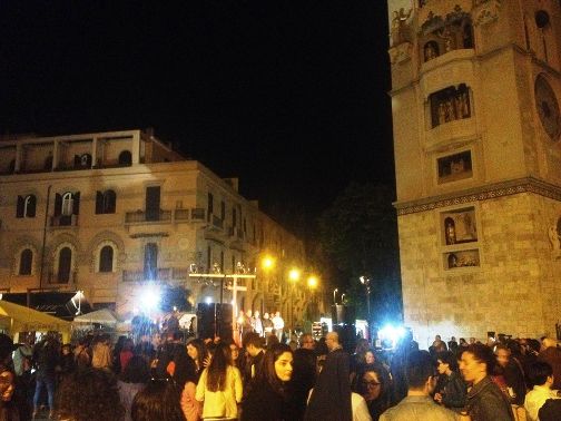 In tanti hanno affollato Piazza Duomo, partecipando all’accoglienza della Croce, portata sul palco da alcuni giovani