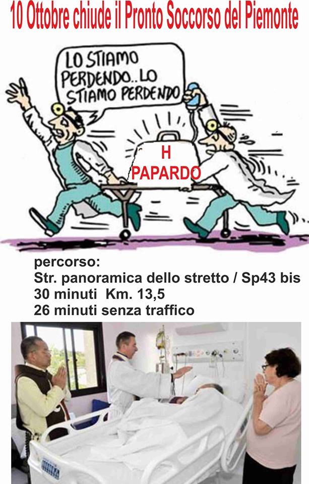Su Facebook, nel gruppo “Salvare l’ospedale Piemonte”, Renato Coletta, esponente di spicco del Comitato che da anni si spende per salvare il nosocomio di viale Europa, scrive: “Io do una cosa a te e tu ne dai una a a me! Ecco come si sono venduti l’ospedale. Questa vicenda è emblematica del “sistema Messina”: si individua un bene pubblico allettante, si trova l’accordo per acquisirlo, magari a costo Zero, si promette una contropartita per comprarsi il sostegno politico di un gruppo e ad operazione conclusa, ai fiancheggiatori politici e mediatici, si elargiscono una manciata di posti di lavoro, qualche incarico e clientele varie… Ovviamente la fondazione e il suo giornale brindano… State tranquilli noi non molliamo di 1 cm!”