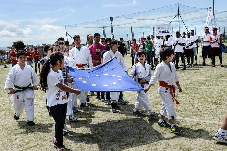 La giornata è stata aperta dal gesto simbolico che ha accomunato tutte le 12 sedi di attività: 5 bandiere Europee (una per delegazione) ed una africana, legate a dei palloncini intrecciati e sorrette dagli atleti, sono state fatte volare in cielo come simbolo dell’impegno degli atleti disabili e normodotati per costruire insieme un’Europa a favore dell’integrazione attraverso lo sport.