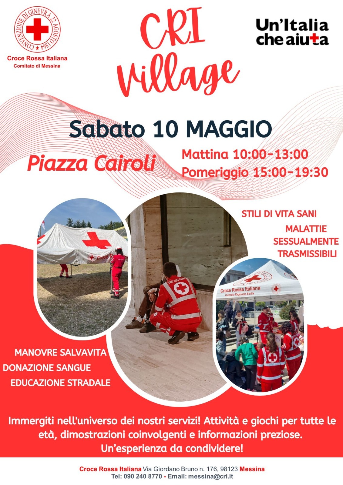 - Sabato 10 maggio, dalle 10:00 alle 13:00 e dalle 15:00 alle 19:30, a Piazza Cairoli sarà allestito il “CRI Village”. Si tratta di uno spazio espositivo e interattivo dove saranno presentate le principali attività che la Croce Rossa Italiana svolge sul territorio. Nel corso della giornata, i cittadini potranno partecipare ad attività di educazione stradale, promozione di stili di vita sani e sensibilizzazione alla donazione di sangue. Inoltre, verranno offerte dimostrazioni gratuite delle manovre salvavita. Un’occasione preziosa per conoscere da vicino il quotidiano impegno dei volontari della CRI al servizio della comunità.