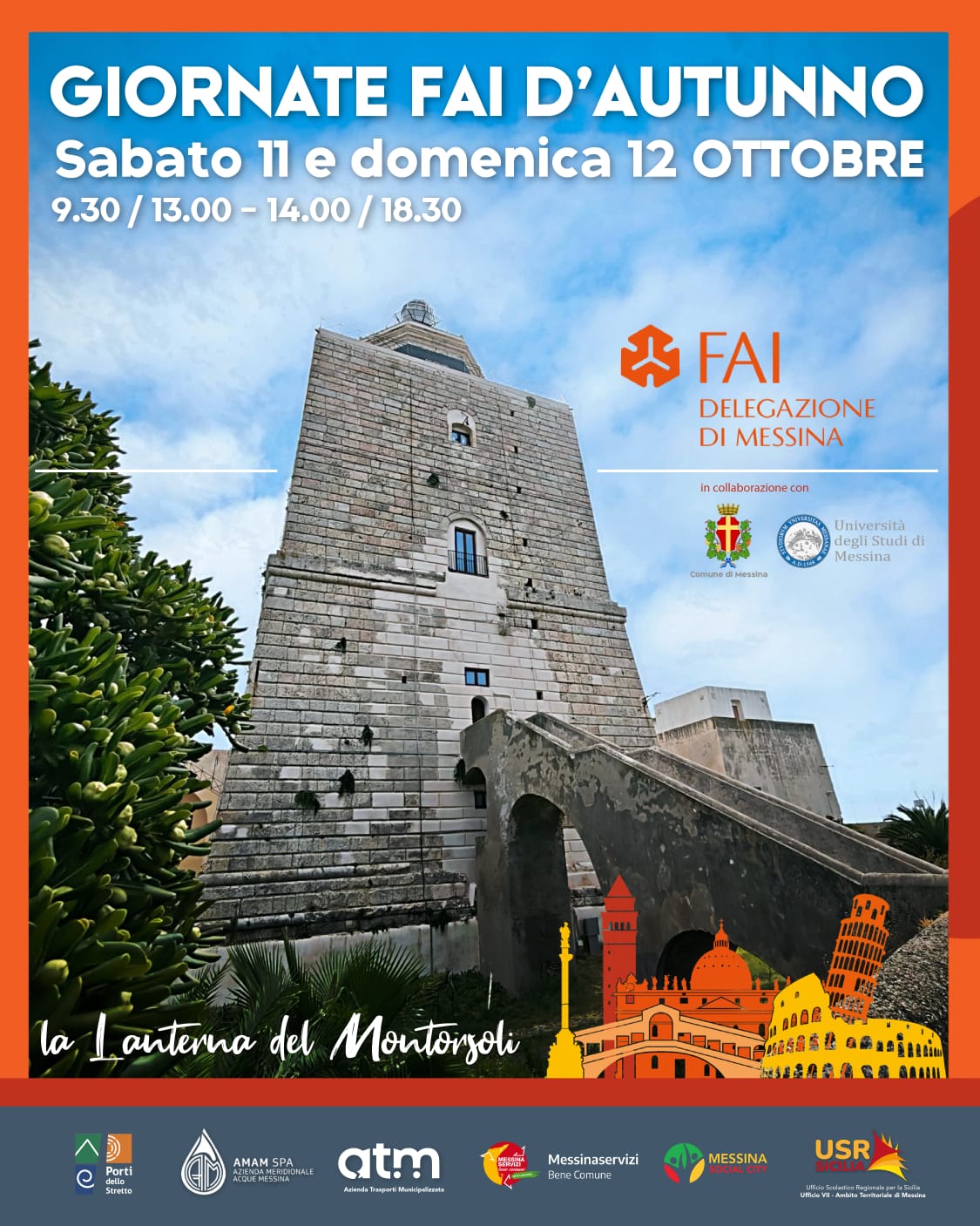 Le “Giornate FAI d’Autunno” 2025 arrivano anche a Messina sabato 11 e domenica 12 ottobre. Le Giornate sono ormai giunte alla 14esima edizione e quest’anno il FAI festeggia anche 50 anni. Per questa edizione si potrà godere di una straordinaria apertura nella Città dello Stretto: “La Lanterna del Montorsoli”, fortificazione progettata e costruita tra il 1555 e il 1557. Si tratta di uno dei Fari più antichi d’Italia.