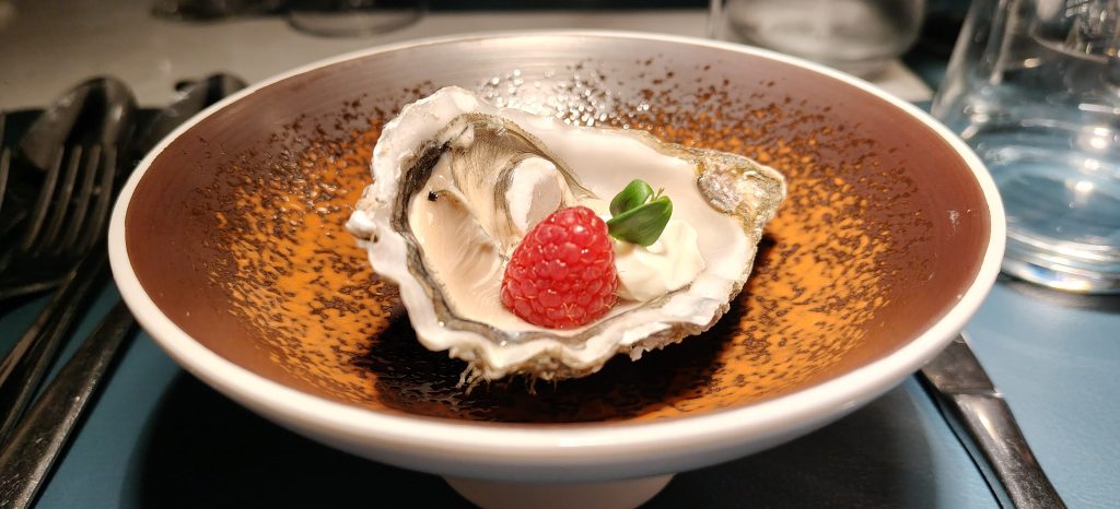 Ostrica con panna acida e lampone