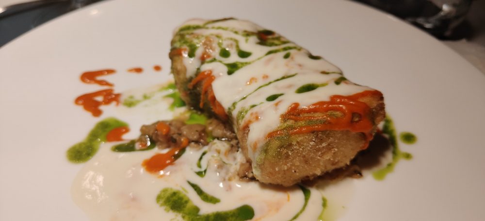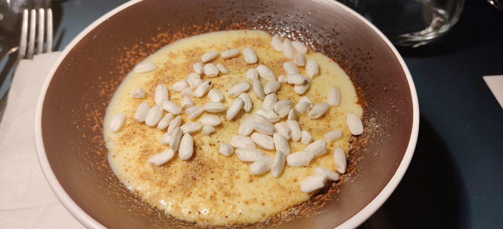 Nata dalla profonda amicizia che lega Paolo Romeo a Guido Pecora, la “Moonlight Dinner” è stata anche l’occasione per lo chef de La Corte dei Mari per presentare dei nuovi piatti, tra cui l’arancino di pesce spada al cucchiaio. Uno dei simboli della rosticceria messinese si è trasformato in piatto gourmet dal sapore avvolgente, che conquista al primo assaggio. Un cuore di ragù di pescespada avvolto da spuma di zafferano, patate e maiorchino a cui il riso soffiato tostato al forno e la mollica atturrata regalano croccantezza.