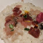 Risotto al lime con erba cipollina e tris di tartare (tonno, alalunga e gambero)