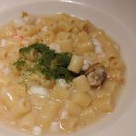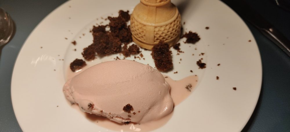 La cena degustazione è iniziata, però, con la fresca ostrica con lamponi e panna acida. Semplicemente deliziose le tagliatelle di seppia al lime. Molto interessanti i primi piatti che hanno proposto, rispettivamente, innovazione e tradizione. Il pesce spada alla parmigiana era bello da vedere e gustoso da magiare mentre il gelato cannella e arancia ha regalato la fresca e perfetta conclusione della serata.