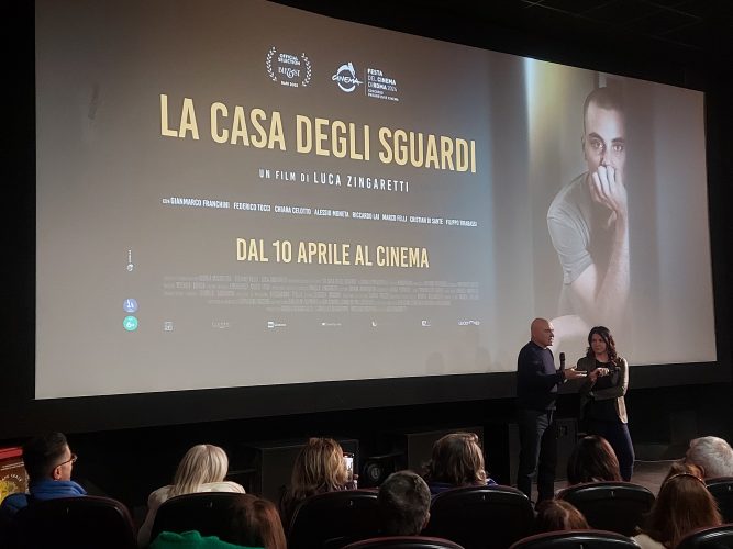 Prima di lasciare il pubblico alla visione del film “La casa degli sguardi”, Zingaretti ha invitato tutti ad andare al cinema, un’arte che non deve morire mai.