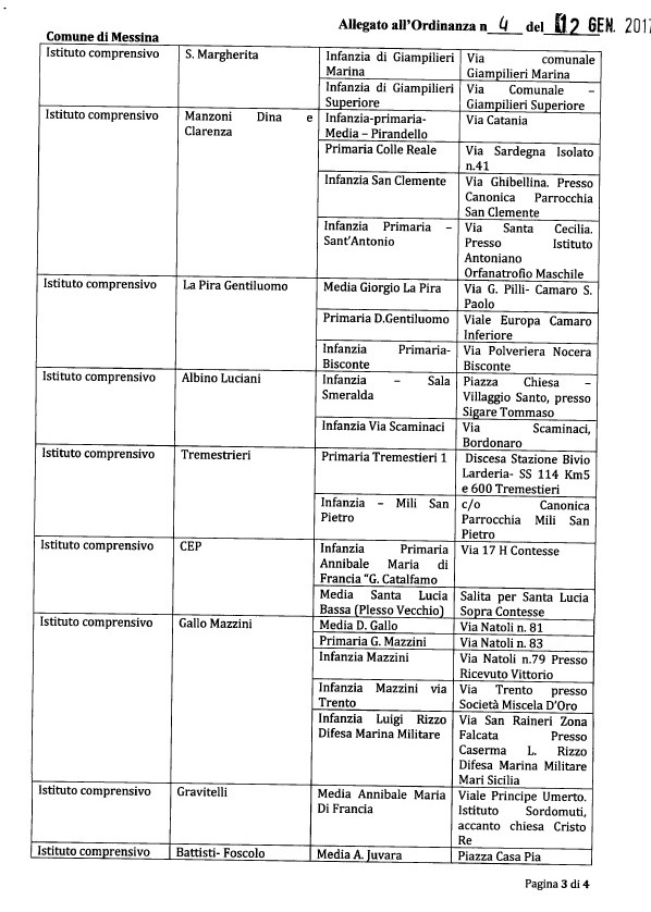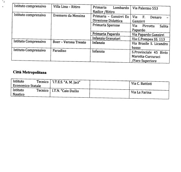 Di seguito la liste delle scuole interessate dal provvedimento: