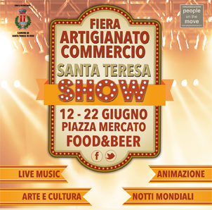 Artigianato di qualità, musica, specialità gastronomiche, festa della birra, Mondiali 2014, intrattenimento per i bambini: l’inizio del Santa Teresa Show si avvicina e aumentano le novità della Prima Edizione della Fiera dell’Artigianato e del Commercio che si terrà a piazza Mercato dal 12 al 22 giugno.
