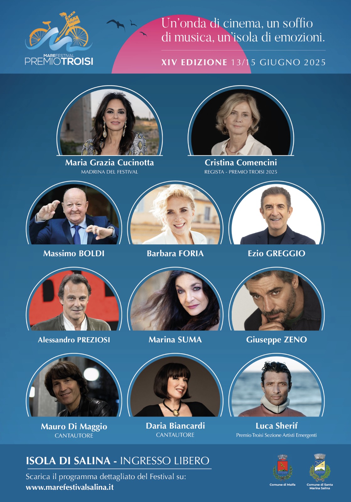 Alla XIV edizione del Marefestival Premio Troisi, tra i tanti ospiti, ci saranno anche Alessandro Preziosi e Giuseppe Zeno. I due riceveranno il Premio Massimo Troisi sull’isola di Salina. Il festival ricorda e celebra ogni anno il compianto artista napoletano, scomparso nel 1994, nei luoghi del suo ultimo set de “Il Postino”.