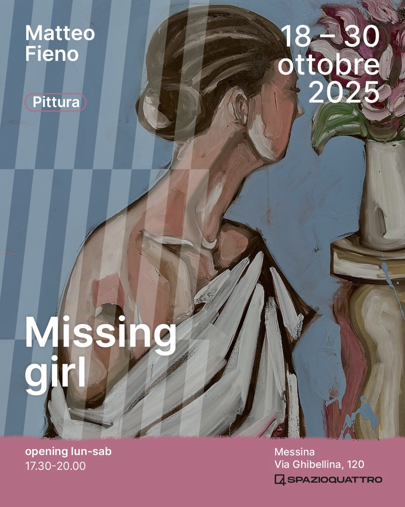 Allo studio Spazioquattro di Messina arriva la mostra “Missing Girl”. L’associazione culturale, dal 18 al 30 ottobre 2025, ospiterà la mostra dell’artista figurativo Matteo Fieno; una riflessione visiva sull’assenza interiore, sull’identità sospesa e sulle parti di sé che restano in ombra.
