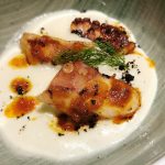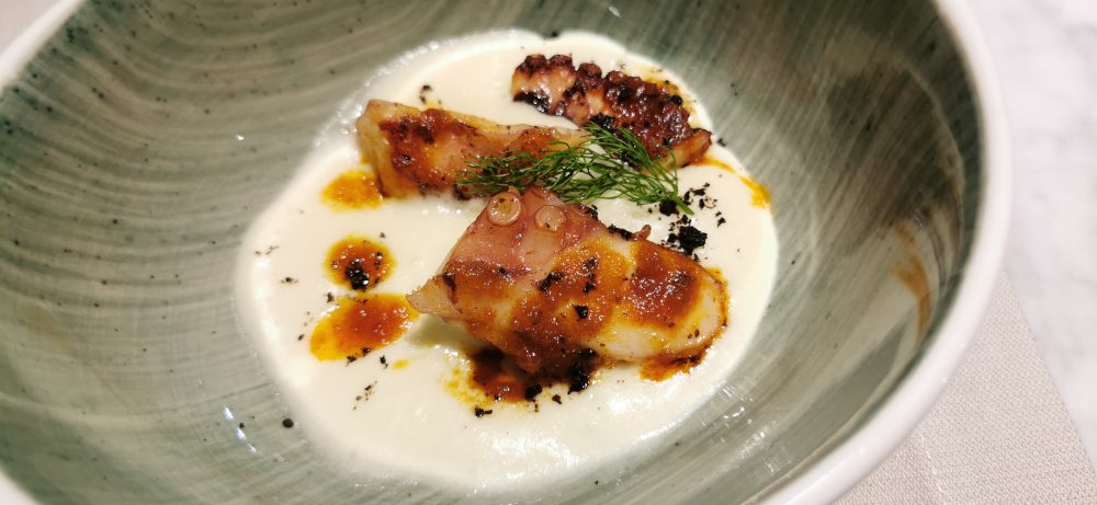 E ieri sera, in un evento dedicato alla stampa, è stato possibile degustare alcune delle nuove proposte che chef Caliri ha ideato per Miscela D’Oro. Dalla caponata con cioccolato fondente, alle cozze su crema di macco di fave; dal polpo su spuma di patate alle seppioline con crema di broccoli e carote; dall’uovo alla Benedict su salsa olandese al baccalà pastellato con finocchi e arance.