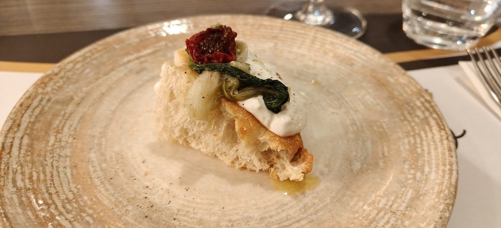 L’evento “Pizza & Bolle” alla pizzeria Basilicò di Messina è stato scandito da sei assaggi che hanno composto il menù degustazione. Un percorso fatto di proposte classiche, come l’intramontabile pizza margherita, ma anche di innovazione, come l’impasto al cioccolato abbinato ad ingredienti salati. Andrea Pellegrino ha dato così un’ulteriore prova della sua abilità e della sua creatività, caratteristiche che hanno portato Basilicò ad essere premiata con 2 spicchi del Gambero Rosso.