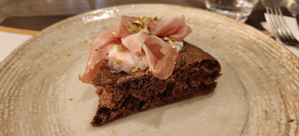 - Al Padellino (impasto al cioccolato): mortadella, stracciatella, pistacchio e limone – Gallimard Cuvee de Reserve Pinot Noir 100%
