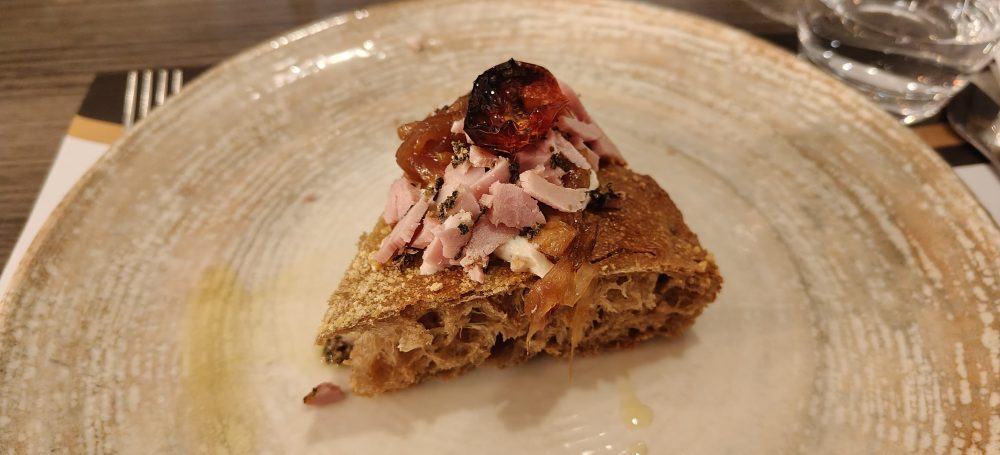- Al Padellino: porchetta di tonno, caponata di melanzane, provola affumicata e pomodori secchi – Domaine de la Galiniere Vuouvray Methode Traditionelle Chenin Blanc 100% 144 mesi