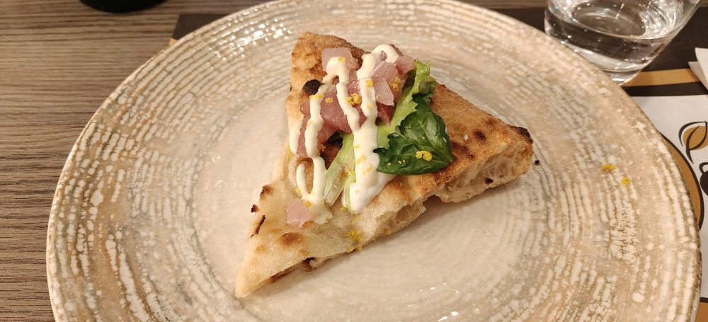 Francesco Geraci ha condiviso con i commensali il suo amore per i vini, raccontando le origini del metodo classico francese, dalla Blanquette de Limoux agli Cremant, fino allo Champagne, spiegando come ogni bottiglia sia un pezzo di storia, di territorio e di cuore. È stato affascinante ascoltare le storie dietro ogni etichetta e scoprire i suoi abbinamenti pizza/bollicine.