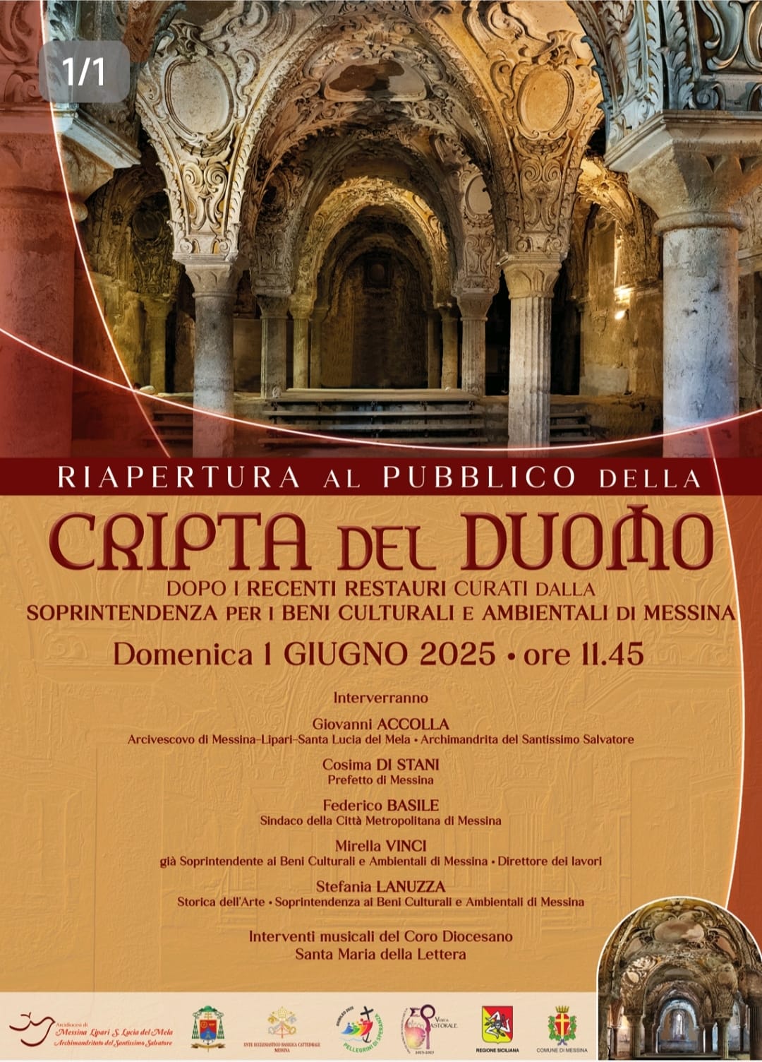 La Soprintendenza ai Beni Culturali e Ambientali di Messina ha curato i lavori di messa in sicurezza e recupero che sono stati completati. La Cripta sarà restituita all’Arcidiocesi e alla Città il prossimo primo giugno, nel contesto dei solenni festeggiamenti in onore della Beata Vergine Maria della Lettera.