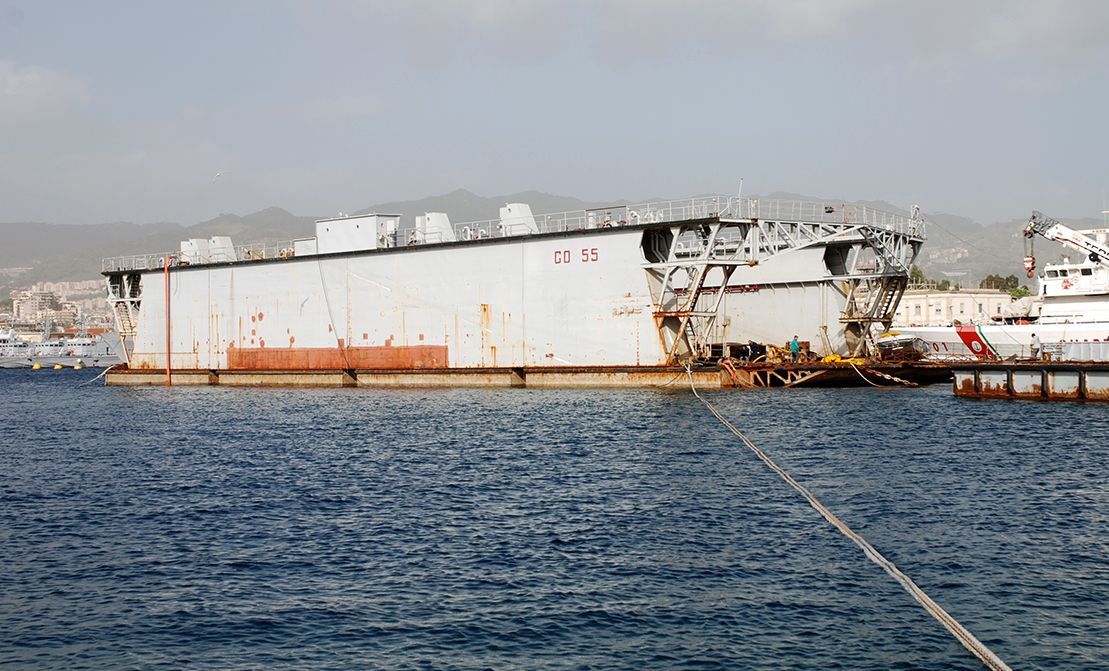 L’operazione di ripristino del bacino, che qualche giorno fa, a causa di un’avaria, era parzialmente affondato, è stata portata a termine con successo in tempi brevissimi grazie alla professionalità delle maestranze dell’Arsenale.