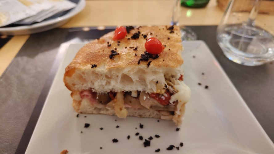 - Quarto atto: La disgraziata (salame, melanzane sottolio, mortadella, primo sale, terra di olive, funghi, gocce di Habamix, lacrime di peperoncino);