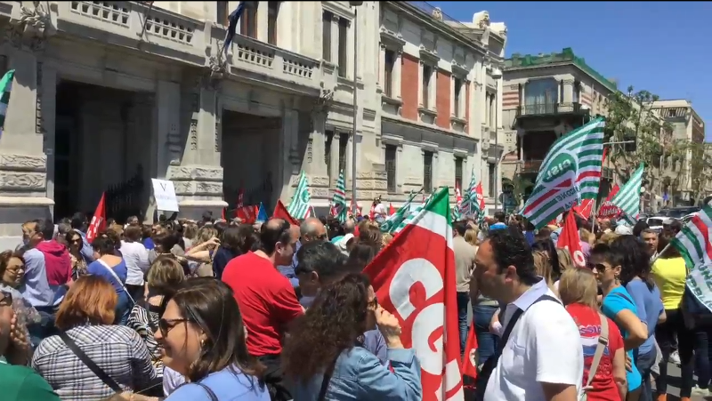 Dopo 25 anni di precariato, adesso c’è il rischio concreto di rimanere disoccupati. Questa la situazione dei 22.500 lavoratori degli Enti Locali regionali e territoriali e degli 8mila Lsu che, questa mattina, hanno sfilato in corteo per le vie del centro. Una manifestazione a carattere regionale, organizzata dalla sigle sindacali Cgil, Cisl e Uil, che ha visto la partecipazione di quasi mille precari provenienti dalla parte orientale della Sicilia. In contemporanea, a Palermo, ha invece manifestato il blocco occidentale. Sicilia logisticamente divisa in due, ma unita nel chiedere a gran voce la stabilizzazione di chi presta servizio all’interno della Pubblica Amministrazione. “Chiediamo al Governo regionale di mettere fine a una vertenza vergognosa – spiega Francesco Fucile della Fp Cgil – è necessario avviare un processo di stabilizzazione, con opportune scelte normative. Tanta gente rischia di non lavorare più a fine anno. La situazione è ormai intollerabile, alcuni Enti hanno ridotto l’orario di lavoro a diciotto ore. Tutto ciò va avanti da decenni, siamo arrivati al punto terminale, siamo pronti a bloccare tutti i servizi se non si arriva a una soluzione”.