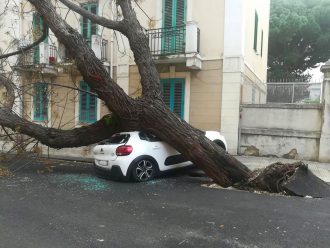 Messina. Albero crolla e distrugge un’auto in sosta sul viale Regina Elena – FOTO