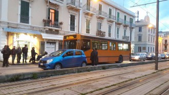 Auto blocca per mezz’ora Autobus e una trentina di vetture: arriva ‘Hulk’ e la sposta