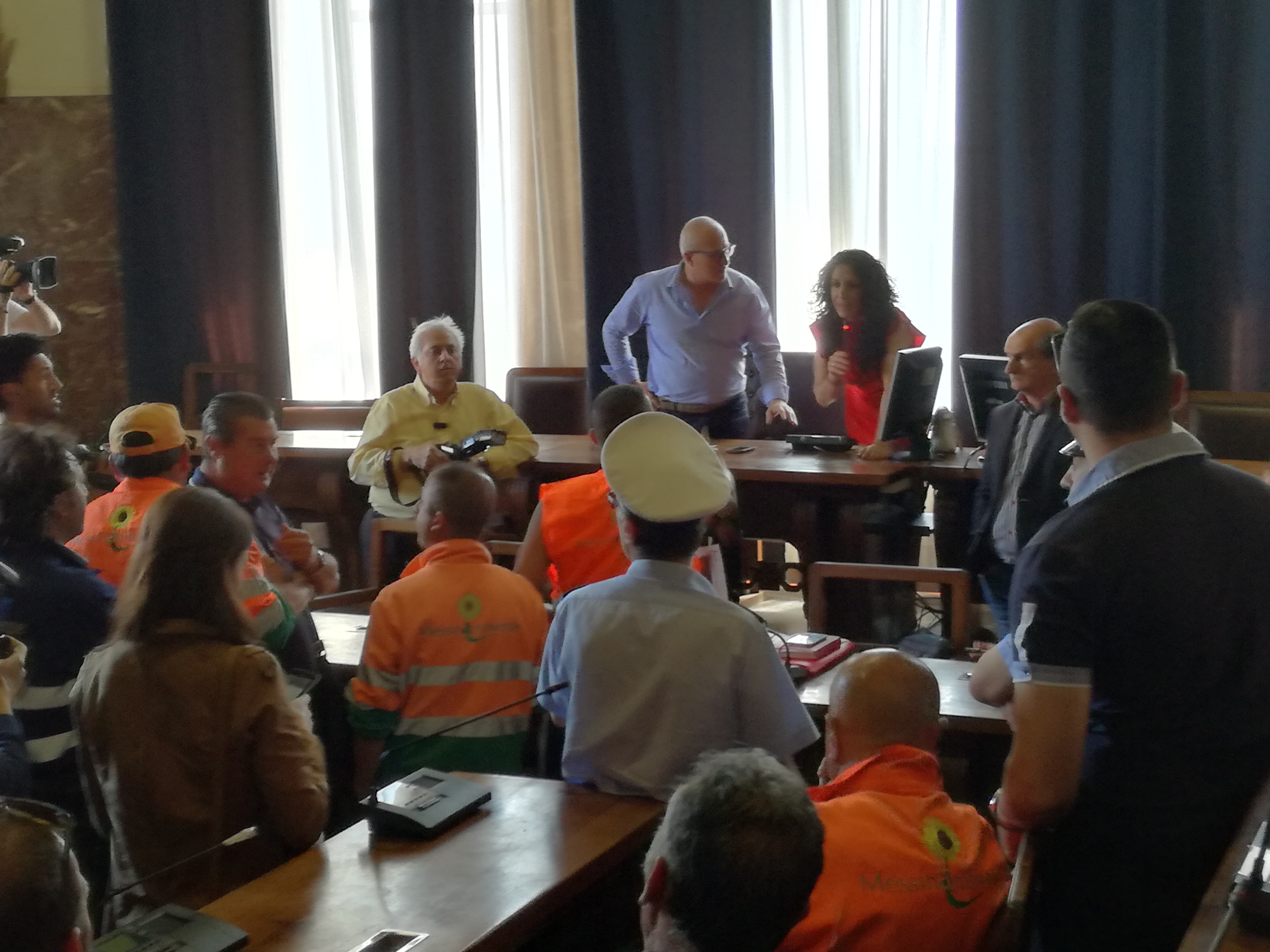 Si fa sempre più rovente il clima attorno alla nascita della Messina Servizi Bene Comune. Questa mattina, in occasione della seduta ordinaria della commissione ambiente, un nutrito numero di lavoratori di Messinambiente ha fatto irruzione nell’aula consiliare interrompendo i lavori.