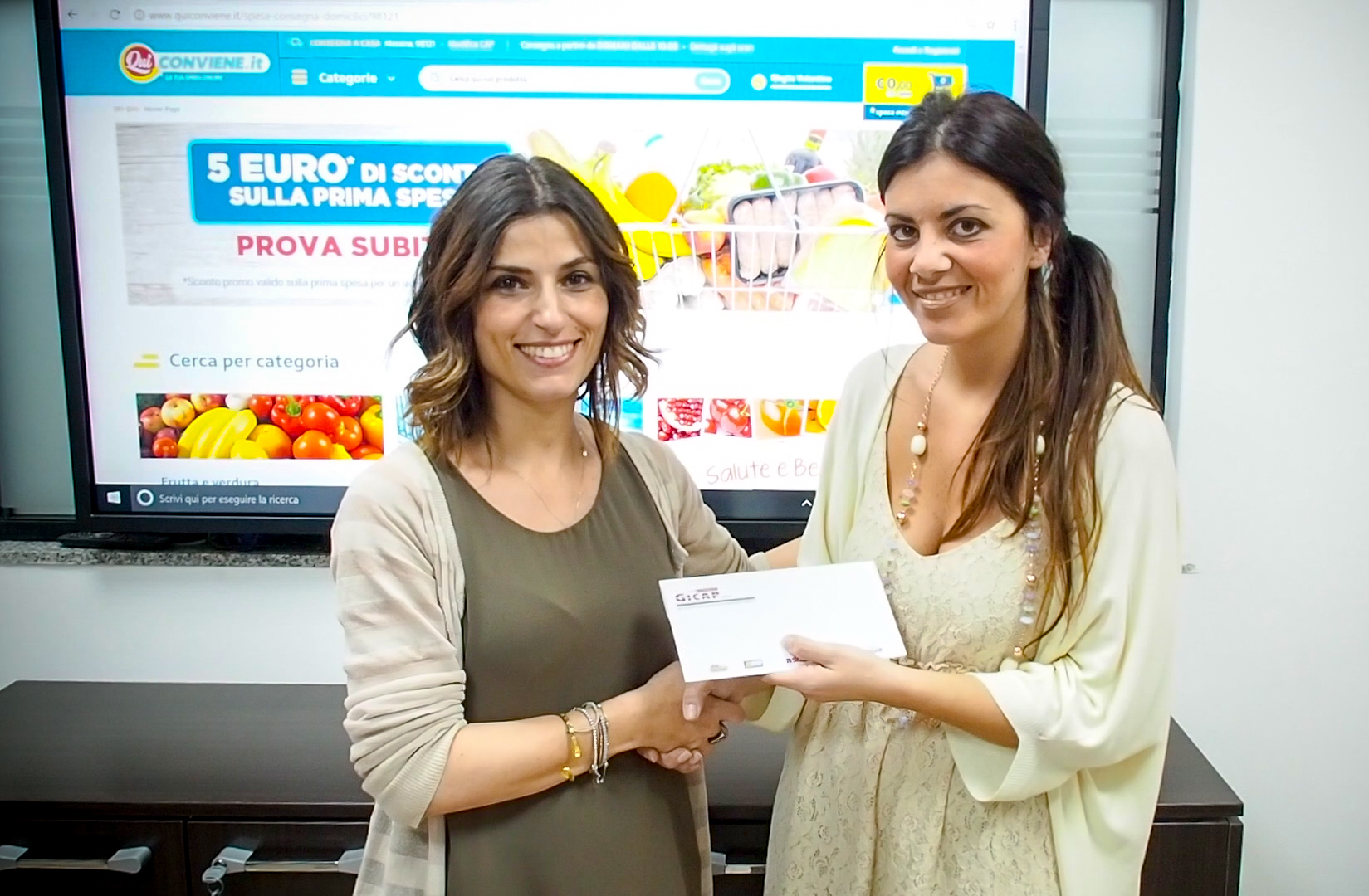 Paola e Biagio, che sono due affezionati clienti della spesa online, sono stati premiati con alcuni buoni spesa da spendere sul sito Quiconviene.it dal direttore generale di Commerciale Gicap, Valentina Capone e dal direttore vendite Giovanni Capone.