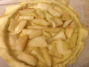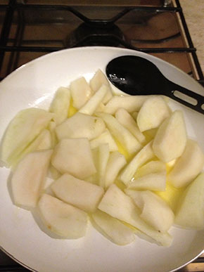 Sbucciate le pere e tagliatele a fette non troppo sottili, e fatale imbiondire in padella con una noce di burro. |