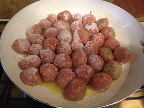 | Sciogliete il burro in una casseruola , fate cuocere le polpette nel burro. Aggiungete il vino, lasciatelo evaporare e proseguite la cottura per ancora 15 minuti a fiamma bassa. |