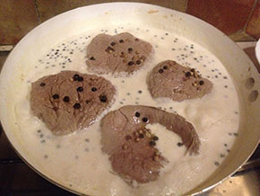 rimettete nella padella le fette di filetto e conditeli per bene con la salsa a fuoco molto basso.