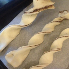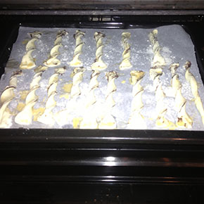| Attorcigliatele su se stesse e adagiatele sulla placca da forno. Spennellate con l’uovo rimasto ed infornate. A 180 gradi in forno preriscaldato per una decina di minuti (fino a quando non saranno dotati in superficie) |