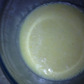 | in una ciotola amalgamate la farina con il lievito. in un’altra ciotola mettete le uova con il latte e l’olio e sbattete con le fruste elettriche. incorporate le uova con la farina e continuate a mescolare con le fruste. |