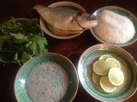 Pulite l’orata e mettete il limone tagliato a fette all’interno.