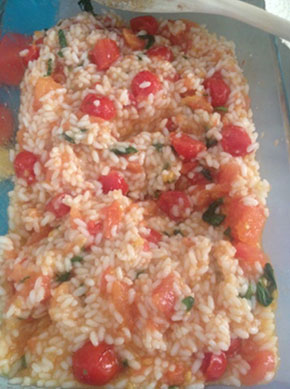 Rimettete il sugo nella ciotola,unite il riso,e la scamorza.