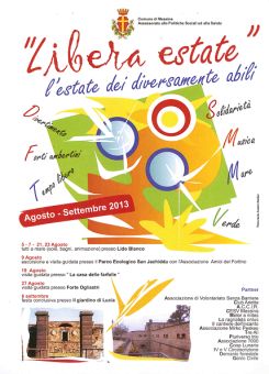 Proseguirà lunedì 19 per concludersi il 6 settembre, “Libera Estate”, progetto promosso dall’assessore ai servizi sociali, Nino Mantineo, in collaborazione con enti, istituzioni locali e associazioni culturali cittadine. Obiettivo dell’iniziativa è offrire giornate di svago al mare, escursioni in luoghi collinari della città e gite ai fortini a soggetti disabili. Il programma prevede sino a martedì 27, dalle 16.00, pomeriggi al mare al lido Blanco, che ospiterà gratuitamente le associazioni; lunedì 19, visita guidata, curata dal demanio forestale, alla “Casa delle farfalle”; martedì 27, visita guidata a Forte Ogliastri. L’appuntamento conclusivo sarà il 6 settembre, alle 17.00, al giardino di Lucia; dopo i saluti dell’assessore Mantineo, sarà proiettato “Trilogia del bosco. Autunno, Inverno, Primavera”, lungometraggio di 45 minuti prodotto dalle associazioni “Il cantiere dell’incanto” e “La ragnatela” onlus, per la regia di Santi Minasi e Marco Fornarola, con le musiche del laboratorio Suono e Ritmo e la partecipazione di Paolo Fresu, Alessandra Giura Longo e Angelo Tripodo. Seguirà un breve dialogo con gli spettatori e alle 19.00 il Pluriverso Trio si esibirà in un momento musicale con Angelo Tripodo alle percussioni, Cosimo Costantino al sax e Antonio Magazzù al basso.